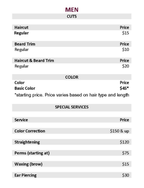 Men’s Salon Services